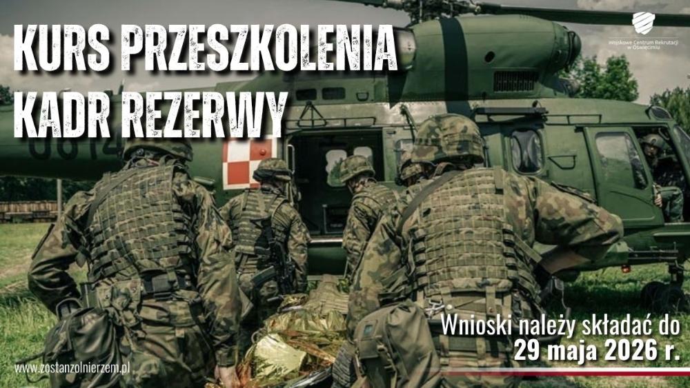 Wnioski ochotników o powołanie na wyżej wymienione kursy należy składać do Szefa Wojskowego Centrum Rekrutacji w Oświęcimiu do dnia 29 maja 2026 r.